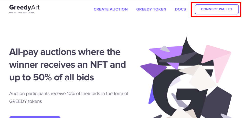 1. Connect to the site with the wallet from which the auction was created by clicking the Connect Wallet button.